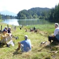 Vorbei an zwei Seen reist die Gruppe im Gespräch