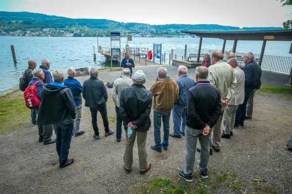 Eigentlich wäre das Wochenende reserviert gewesen für den Besuch des Bezirksgesangsfestes im bündnerischen Bonaduz, welches dann leider bereits zum zweiten Male wegen der Corona-Pandemie abgesagt werden musste. So wurde daher schon vor längerer Zeit einen Tagesausflug ins Programm genommen. Zuerst ging es mit dem Zug nach Zürich-Enge, weiter zur Schiffsanlegestelle beim Bürkliplatz. Das Schiff Säntis war recht gut besetzt, und die Sonne schien zusehends wärmer. Leider war auf dem Schiff die Gastronomie eingestellt. Aber der Reiseleiter Remo Manhart, immer für eine Überraschung gut holte schon am Vortag die Bewilligung ein, selber einen Apéro mitnehmen zu dürfen. Dabei zeigte sich Hanspeter Menzi einmal mehr von seiner Gönnerseite und spendete seinen Sängerkameraden den Weisswein aus seinem Rebberg. So war die Stimmung schon recht gut, gab es doch auch nach so einer langen Zeit der Abwesenheit einander viel zu erzählen. Haupthemen natürlich die Impfungen, die kommenden Lockerungen, aber ganz klar das gemeinsame Singen. Die fehlende Kameradschaft wöchentlich zu pflegen, hat Spuren hinterlassen, das kam deutlich zum Ausdruck. So hiess es schon bald aussteigen bei der Halbinsel Au. Noch vor dem Mittagessen gab uns Präsident Roman Berli noch einige neueste Infos wie es mit den gemeinsamen Proben weitergehen könnte. Mit grosser Mehrheit sprachen sich die Sänger für eine Weiterführung des Probenbetriebes aus, wenn auch im Moment noch mit Maske.